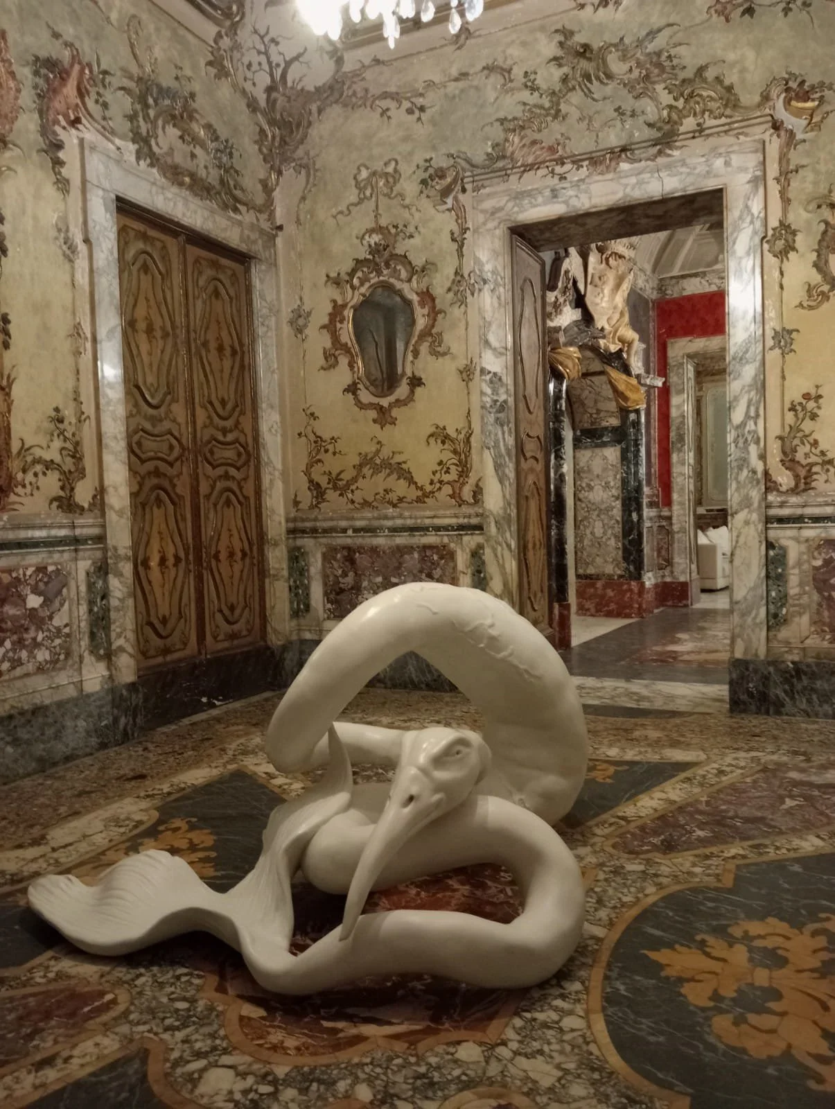 Ci sono poi le Creature meravigliose, animali d’ogni tipo sottoposti a mutazioni e ibridazioni che raggiungono però forme credibili, e che da un lato trasmettono una particolare idea che Ghibaudo ha della scultura stessa (una forma espressiva ch’è a sua volta in costante evoluzione e conosce un processo non esente da errori, anzi l’errore è connaturato al fare arte, ma soprattutto una forma espressiva che sorge dall’esigenza di dare a un’intuizione dell’artista una forma concreta, che occupa uno spazio), e dall’altro si fanno epitome della storia stessa dell’evoluzione, da rileggere secondo un’ottica post-umana (nel senso che oggi l’etica dell’interazione, parafrasando Rosi Braidotti, è definita dalla compresenza degli esseri nel mondo) che non è però anti-umana, come ha ben colto Roland Scotti: “l’artista indica i simboli del trionfo della disponibilità, della interscambiabilità e infine di una mancanza di valori esistenziali, di ciò che in passato veniva definito vivere in modo cosciente. Ma Ghibaudo non critica il progresso: egli indica nelle sue opere l’unica forma di resistenza possibile contro questo fenomeno dell’epoca postindustriale: sorridere dell’assurdità della realtà”. La visione di Ghibaudo, di conseguenza, tiene conto di tutto quel che c’è stato fino a oggi: in questo senso, Ghibaudo è ben conscio del fatto che le sue sculture sono parte d’una storia che lungo i secoli non ha mai scansato una cultura permeata dall’ibrido e dal fantastico. Sarà sufficiente pensare al Rinascimento di Marsilio Ficino che indaga il mondo della fantasia, di Piero di Cosimo che nel suo ciclo della Preistoria immagina un’umanità primitiva dove non esistono confini tra uomini e animali, di Leonardo da Vinci con i suoi studi sulle teste grottesche, il Rinascimento delle creature fantastiche che popolano le opere dipinte e scolpite da una lunga teoria d’artisti d’ogni regione d’Europa. Ghibaudo è erede di questa tradizione, che viene declinata in termini contemporanei per impostare una riflessione profonda sull’attuale condizione umana, sulle contraddizioni dell’individuo, della società e di noi umani tutti, spesso “un po’ troppo egocentrici e superbi”, come ci ha definiti lui stesso: “La metamorfosi narra e fa sognare”, ha affermato Ghibaudo in un’intervista ad Andrea Guastella per ArtsLife, “le mie sculture vorrebbero dire: se a governare siamo noi e apparentemente siamo noi, non possiamo pensare di gestire in toto, per lo meno non ancora, il pianeta, che è un affare più grande di noi”.