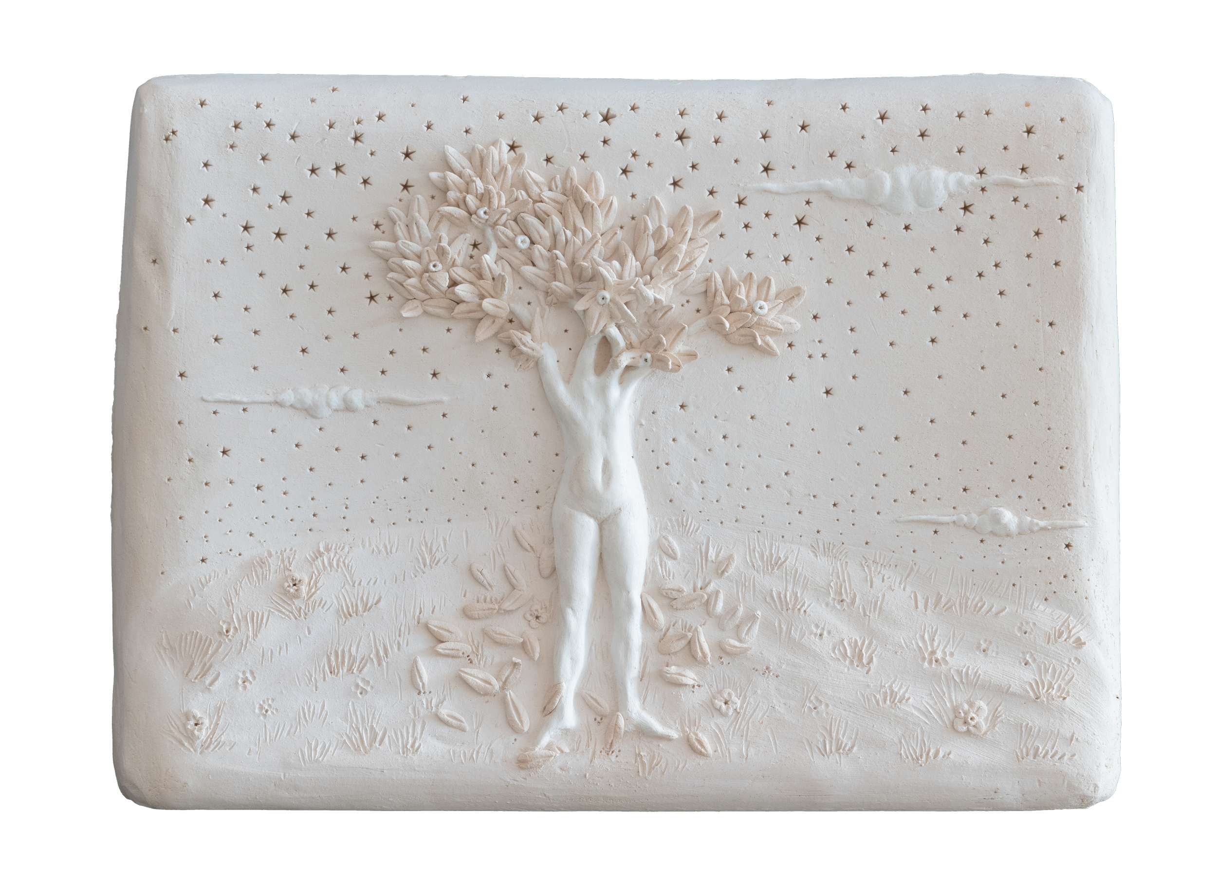 Il capitolo più recente della storia del Museo di Storia Innaturale sono le 41 Formelle, il ciclo che Ghibaudo ha presentato per la prima volta a marzo del 2023 alla Carlocinque Gallery di Milano, nell’ambito d’una mostra curata da Carlo Cinque, con un anticipo della serie presentato in occasione della personale al complesso monumentale di San Francesco a Cuneo che s’è tenuta nel 2022. Eseguite tra il 2021 e il 2022, le formelle dànno vita a un singolare mondo che pone il riguardante dinnanzi a una sorta di compendio dell’immaginario di Ghibaudo, anche se il punto di partenza sono gli antichi codici miniati e gli affreschi del Tre e del Quattrocento, cui rimanda anche la forma di questa serie di lavori che prediligono la scultura a rilievo su di un piano verticale, necessariamente irreale per aggiungere un ulteriore grado di “innaturale” all’universo figurativo dell’artista piemontese.