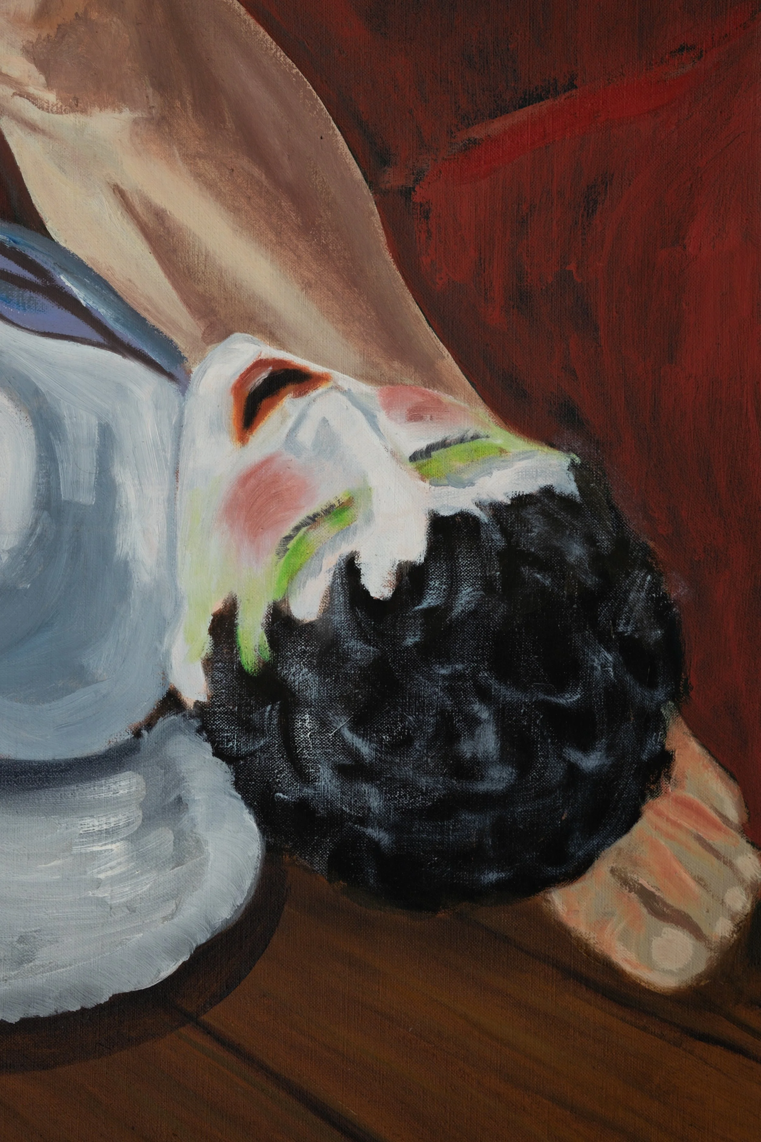 Gli animali, così spesso presenti nel suo immaginario, assumono un’aura che va oltre il loro aspetto: sono creature vulnerabili e allo stesso tempo portatrici di un segreto. I “Bloedhonden” , con i loro occhi malinconici e i corpi segnati, sembrano volerci parlare di una verità che si nasconde dietro gli smalti lucidi.
